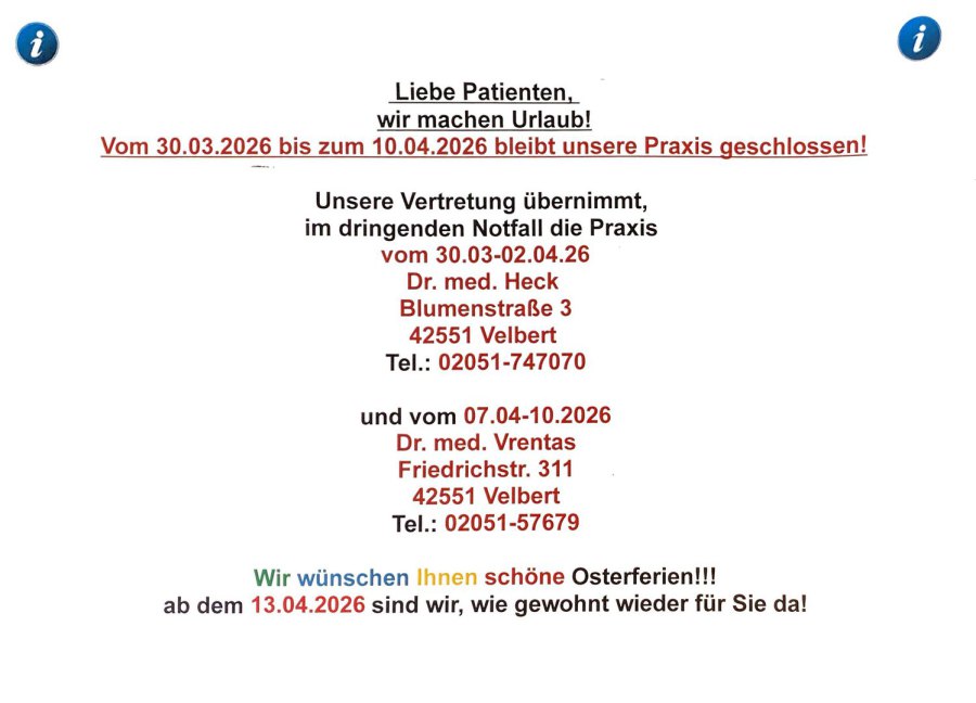 An dieser Stelle möchten wir Sie über Neuigkeiten aus unserer fachärztlichen Praxis informieren. Hier erfahren Sie, wann unsere Praxis urlaubsbedingt geschlossen bleibt und welche Arztpraxen in dieser Zeit unsere Vertretung übernehmen. Hier informieren wir Sie über geplante Fortbildungen unseres Teams, sowie über alle praxisinternen Neuerungen.